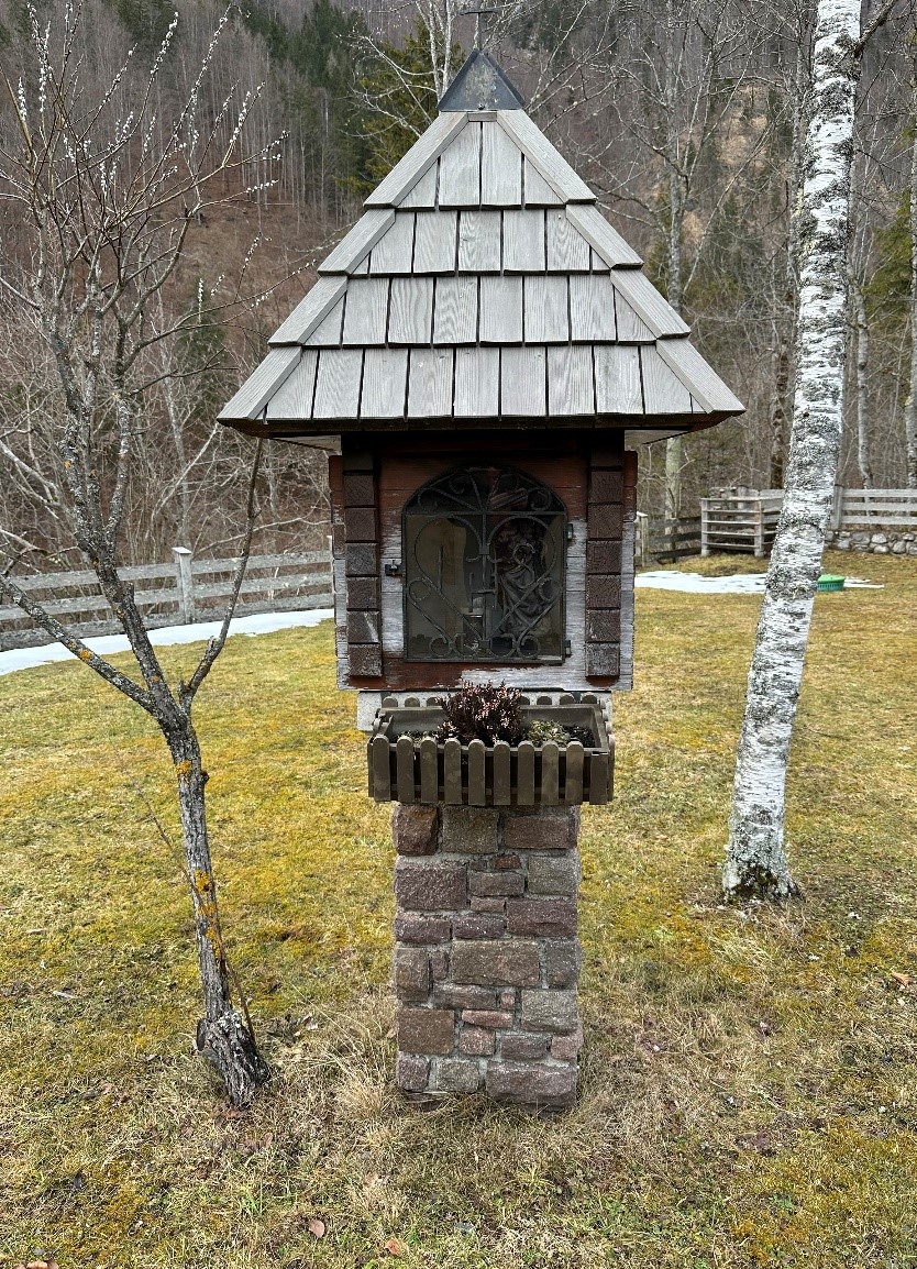Abgebildet ist Maria mit Jesus am Kreuz. Es ist ein Hausbildstock der Fam. Waltl. Dieser Bildstock befindet sich auf Privatgrund und ist nicht zugänglich.