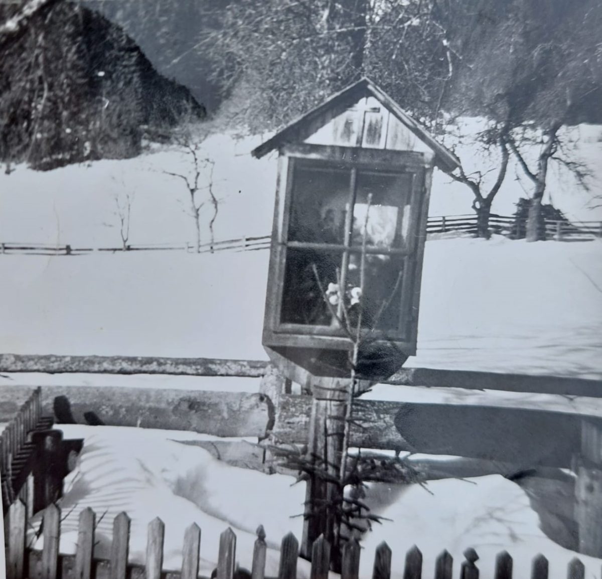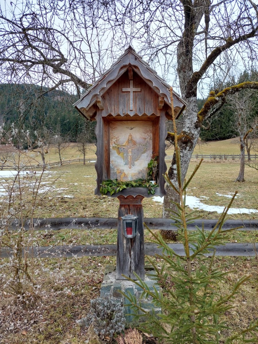 Es handelt sich um ein Wegkreuz mit einem Dreifaltigkeitsbild des Künstlers Franz Weissensteiner vlg. Jaglbauer. Dieses Kreuz wurde 1991 neu errichtet als am 02. November 1990 das alte Kreuz abgebrannt ist.