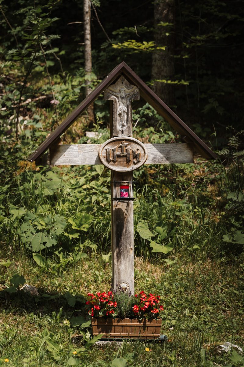 Dieses Hauskreuz zeigt den gekreuzigten Jesus. An dieser Stelle verunglückte ein Fuhrwerk durch eine Lawine.