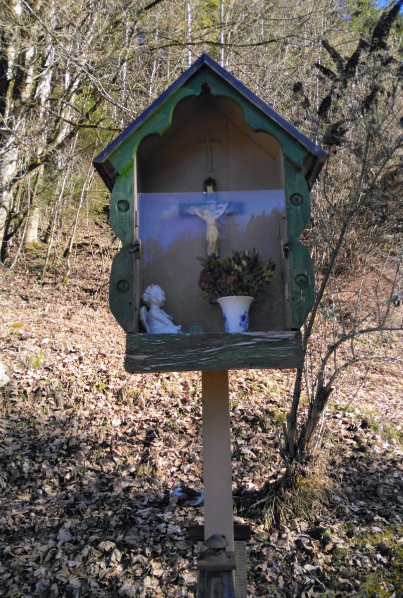 Neben der Schwabltalerstraße in Kainbach befindet sich das Holzmarterl auf dem Anwesen Baumgartner.