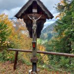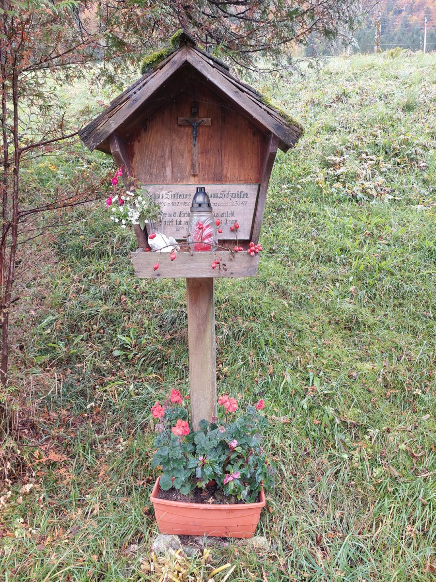 Direkt im Dörfl, auf der steirischen Seite des Laussabaches finden wir ein schlichtes Holzkreuz, im Familienbesitz der Familie Peter und Alexandra Holzmüller