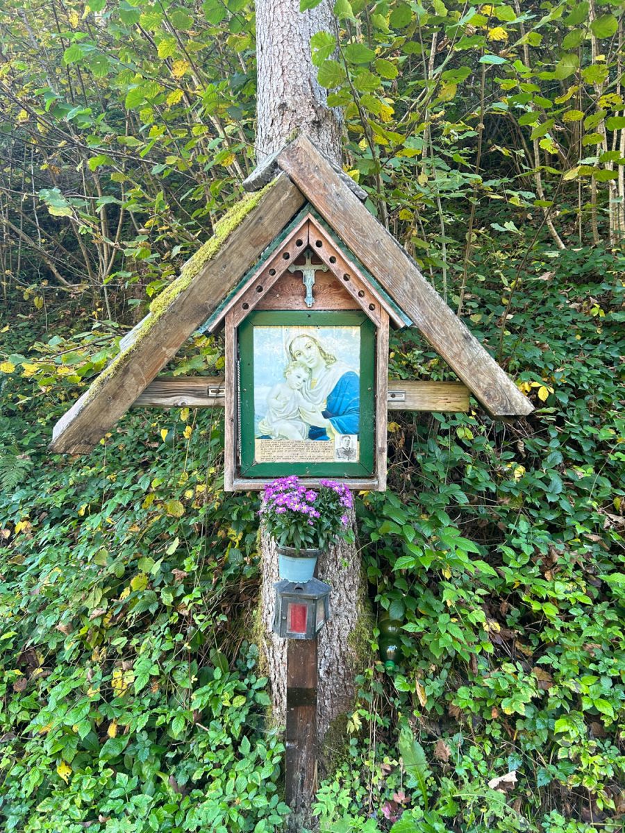 „Gedenket im Gebet an Herrn Franz Kleinlehner aus Maria-Neustift in O.Ö., welcher in Ausübung seines Berufes am 9. September 1957 hier in diesem Bereich mit einem Unimog der Firma Steiger aus Altenmarkt an der Enns von der Straße abkam und in den Spitzenbach stürzte und dabei im 25. Lebensjahr um 15:20 Uhr hier den Tod fand. R.I.P.“