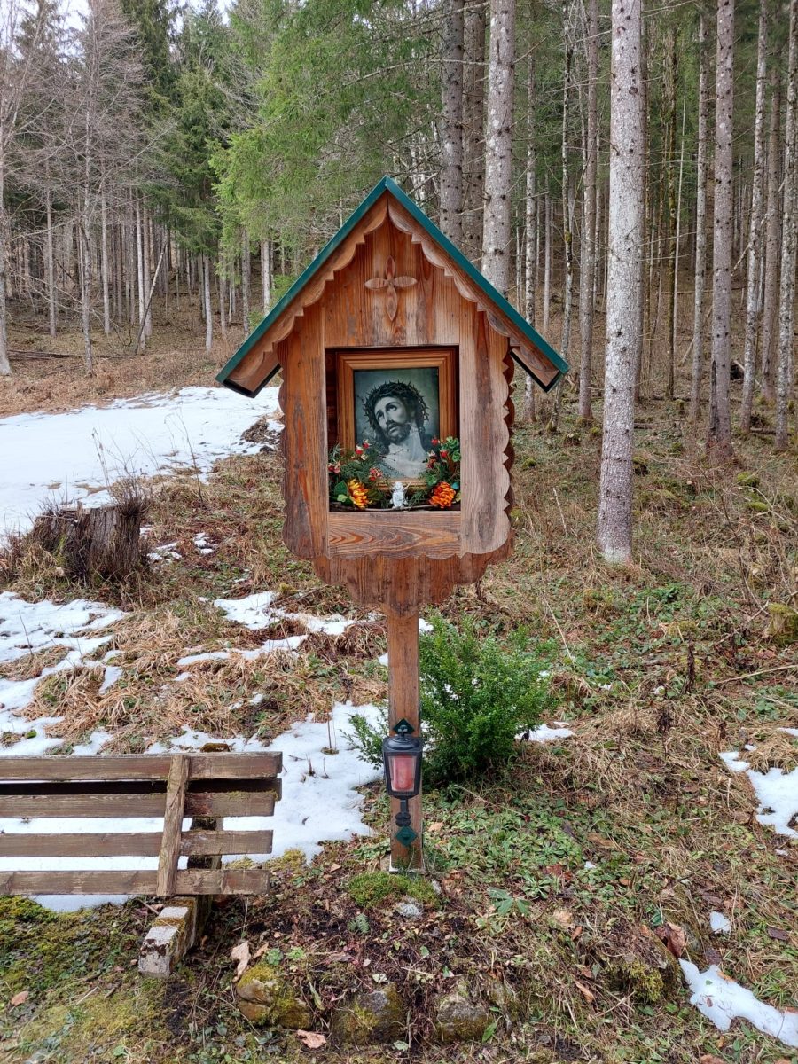 Dieses Kreuz diente vermutlich einst als Gebetsstation, als die Bevölkerung von Unterlaussa ihre Verstorbenen noch zum Friedhof nach St. Gallen begleitete.