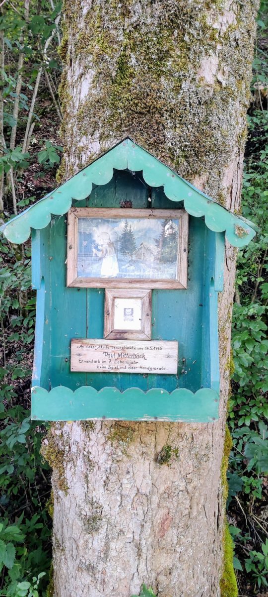 Hier verunglückte im Jahre 1945 Paul Mitterbäck. Er starb beim Spiel mit einer Handgranate.