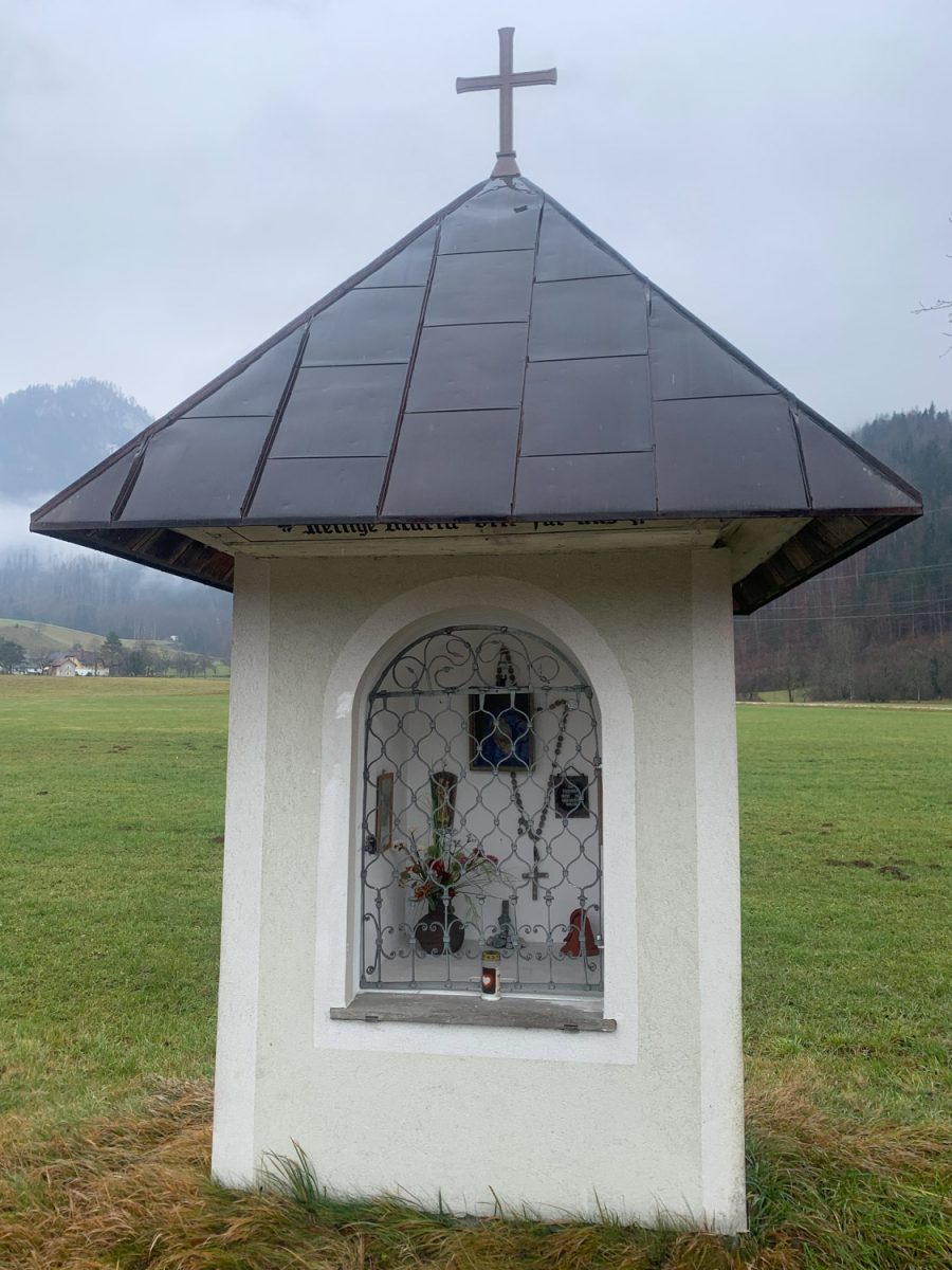 Das Christkind in dieser Kapelle ist das Wesentliche und soll manchen Segen vermittelt haben. Leider wurde die Weltkugel, die es in Händen hielt, vor Jahrzehnten mit der Madonna geraubt. Es finden sich keine Informationen in der Pfarrchronik. Was gesagt werden kann: Es handelt sich um eine Marienkapelle; sie wurde wegen des Strassenbaus 1959 auf den heutigen Platz gestellt. Es wurde das Schindeldach wegen eines Sturmschadens 2000 erneuert, die schöne Türe restauriert und die Kapelle verputzt sowie gestrichen. Sie gehört zum Mönichhof und wird von den Besitzern gepflegt.