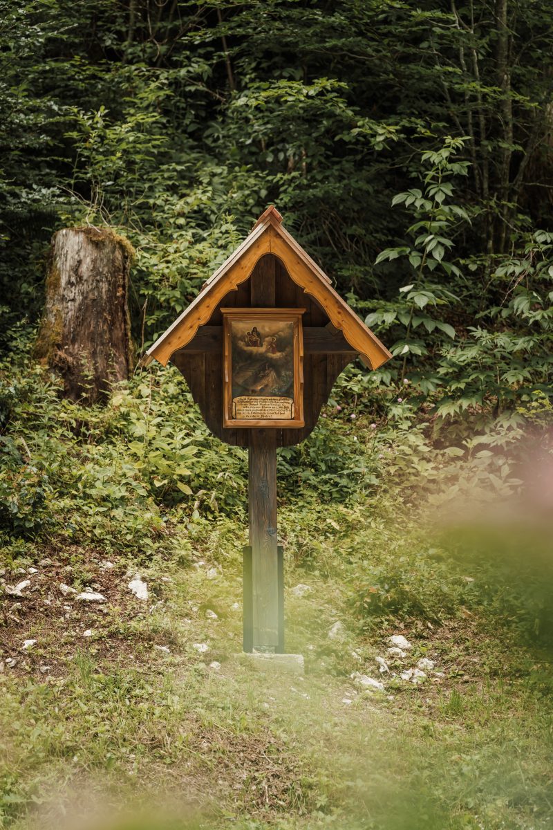 Andenken an Waldarbeiter und Gasthausbesitzer Stefan Raninger aus Hinterwildalpen, ertrunken in der Schreier Klamm am 7.5.1904 im 55. Lebensjahr, Hr. Andreas Spanring hat im Jahr 2025 dieses Kreuz restauriert.