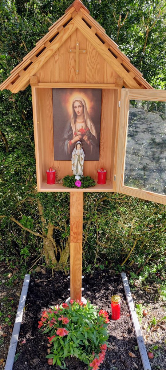 Dieses Kreuz gehört zum benachbarten Haus. Im Kreuz befindet sich ein Bild der Hl. Maria und eine Madonnenstatue. Kreuze wie das Stecherkreuz bezeugen die tiefen ländlichen Religiosität. Oftmals werden diese Kreuze in Gedenken an verstorbene Angehörige aufgestellt oder dienen als Wetterkreuz, um die Bewohner und die Gebäude vor Unheil aller Art zu schützen. Dieses Kreuz wurde im Jahr 2024 renoviert.